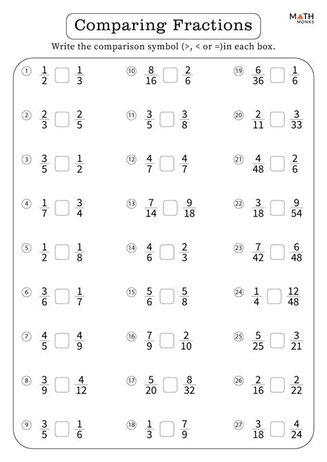 Start fraction, 3, divided by, 10, end fraction. Then compare each pair of fractions using the symbols <, >, and =. Our printable comparing fractions worksheets for grade 3 and grade 4 help children compare like fractions, unlike fractions, and mixed.