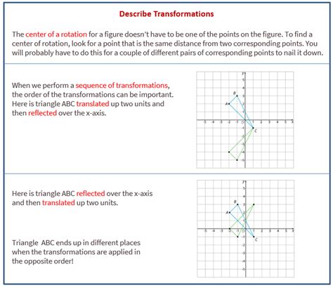 Describing Transformations Worksheets. Some of the worksheets displayed are graph the image of the figure using the transformation,. Some of the worksheets displayed are transformations work name date, pre algebra, 7.