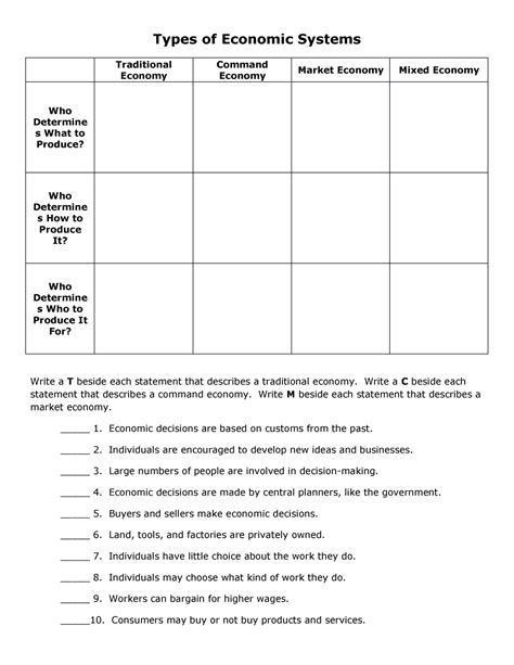 Types Of Economic Systems Worksheet.